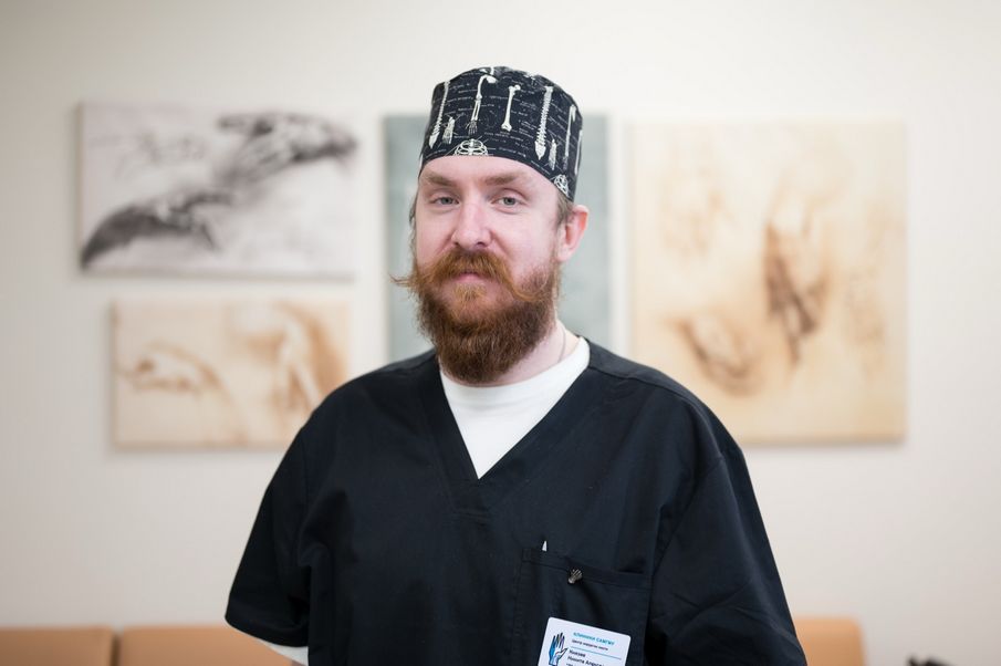 Врач-уролог, врач-нейроуролог отделения урологии с трансплантацией почки Клиник СамГМУ Дмитрий Зотов также поддерживает традицию носить цветные шапочки: «В операционной должен быть позитив, чтобы разбавить эту стерильно-белую обстановку. Сам я предпочитаю абстракцию, геометрию и просто яркие цвета», — поделился он